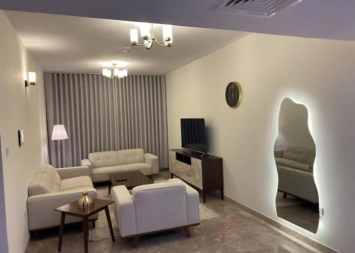 Den här lägenheten ligger inom 25 minuters promenad från Markaz Al Bahja-shoppingcentret. As' Sahwah Public Garden ligger ungefär 10 minuters bilresa från lägenheten.